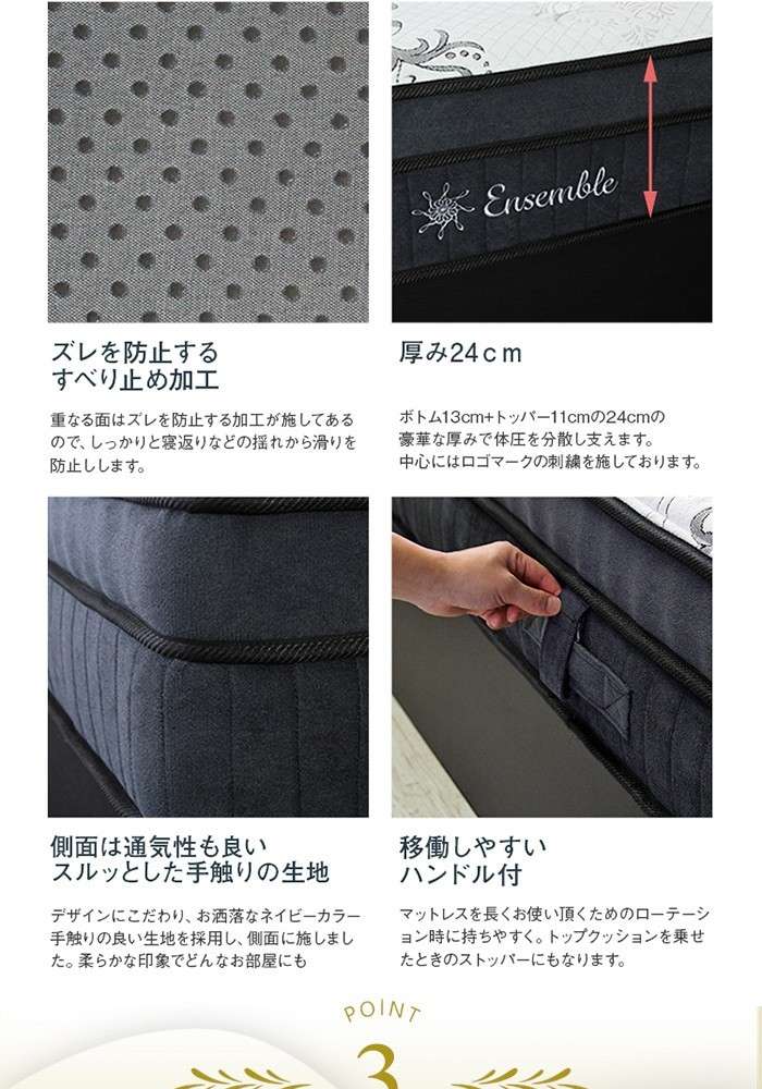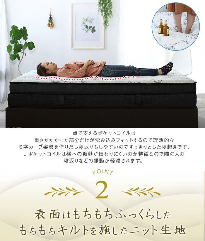 ●2層のポケットコイルで1層にはできない独特な反発が身体を支え心地良い睡眠へ導きます