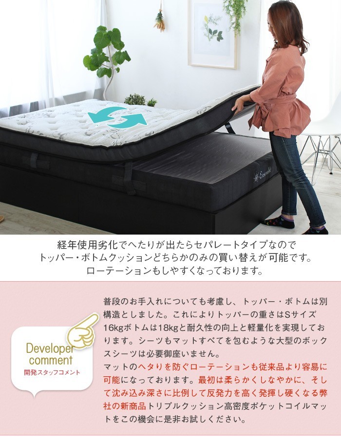 ●マットレスはセパレート式で2つに分けての使用も可能です