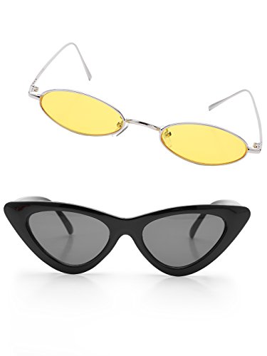 Vintage 50s Sunglasses Slender Cat Eye and Oval Sunglasses for Women 2 Pack
