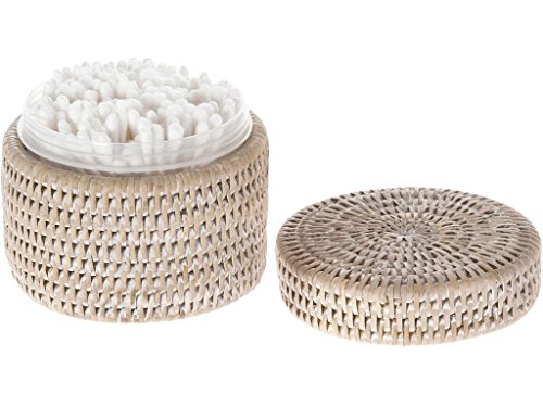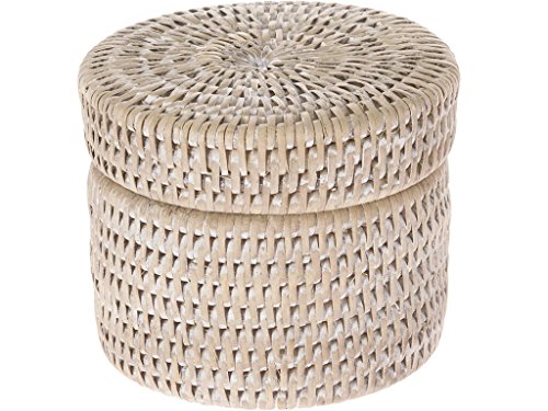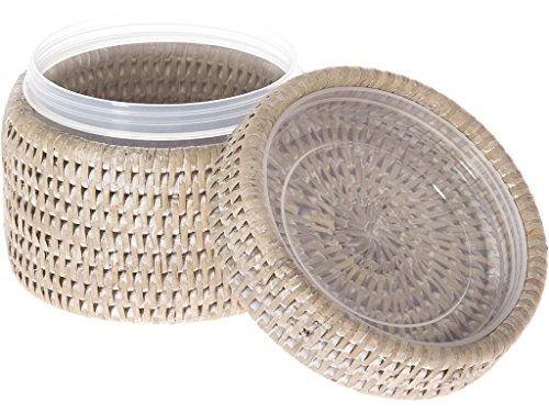 La Jolla Round Rattan Container with Plastic Insert and Twist-Off Lid, Small, White Wash