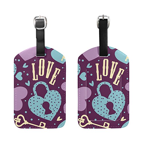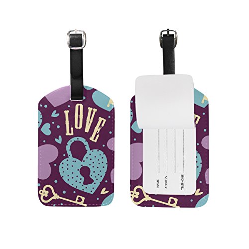 (My Little Nest)/Accessories/Luggage, Bags Travel/DIRECT FROM USA/Travel Luggage Tag Romantic Hearts Keys and Locks PU Leather Baggage Suitcase Tag Name Address ...