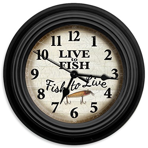 -. Title : Reflective Art Live To Fish Wall Clock, 10"