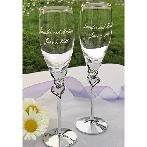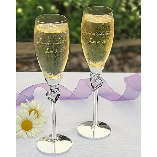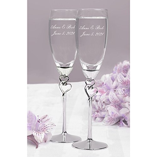 Product Description The sparkly Entwined Hearts flutes offer maximum romantic appeal for your wedding day. Each flute has two entwined hearts accented with 2 small, dazzling rhinestones. Perfect for your wedding day and each anniversary thereafter. Also great for any happy occasion. 0