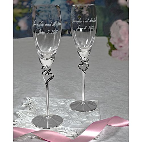 (All Things Weddings)/Kitchen Dining/Bar Tools Glasses/DIRECT FROM USA/Personalized, ENGRAVED Entwined Hearts Wedding Toasting Champagne Flutes, Set of 2