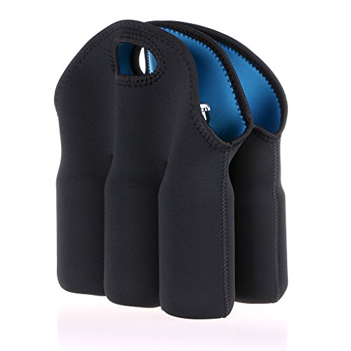 -. Feature : Protects -The stretchy neoprene can not only keep bottles from breakage, bumps and bouncing while on the road but also insulate your drinks from temperature fluctuations - keeping your drinks cool while on your way to dinners, parties and picnics. The soft neoprene bottle protector will keep your bottles secure and ready to enjoy. / Durable and Lightweight - The bottle carrier is strong and lightweight, holds your bottles snugly in place and protects bottles from breaking during travel. Stain-resistant, reusable time and time again, perfect bottle carrier for travel! / Convenient Storage - This tote can fit 6 bottles with 2.5 inches diameter and up to 9 inches tall. Soft suitable size handles make carry comfortable and it's also convenient to be used to hang on a stroller. Great way to transport your drinks and keep them well protected from bumps. / Easy to Clean - The neoprene totes can be rinsed right in the sink. Just spray them down in minutes and towel dry or toss them in the dryer for 10-15 minutes. (Note: The cooler bag has an odor when first removed from packaging, just held up in the wash and air dried it, minimizing the smell.) / Great Gift - It is actually a really versatile beverage carrier. Makes a great baby shower or house-warming gift. It's the six pack bottle cooler every parent should have. Great for you to take it camping, on a road trip or simply use it to carry baby bottles when you're on the go.