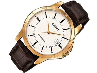 -. Binding : Watch -. Brand : Casio -. Department : Mens -. EAN : 4971850056898 -. Feature : Precise Japan Quartz Movement / Stainless Steel Case and Band with Fold Over Deployment Clasp / Mineral Crystal, Date Display, Silver Tone Hands and Index / Case Size: 41.5 mm Diameter, 8.3 mm Thickness / Water Resistant - 30 M, Module 1333 -. Label : Casio -. Manufacturer : Casio -. Model : MTP-V004GL -. MPN : MTP-V004GL-7A -. PackageQuantity : 1 -. PartNumber : MTP-V004GL-7A -. ProductGroup : Watch -. ProductTypeName : WATCH -. Publisher : Casio -. Studio : Casio -. Title : Casio Men's MTP-V004GL-7A Date Quartz Watch with Genuine Leather