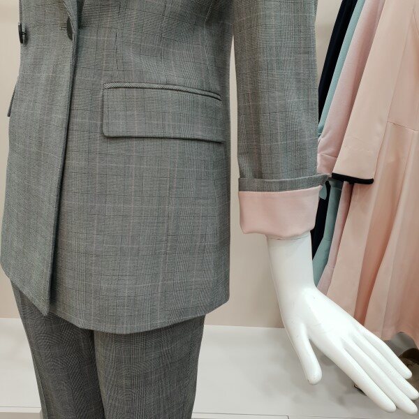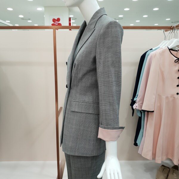모던하고 세련된무드의 체크패턴 정장자켓함께코디한 팬츠 세트상품으로 별도구매가능