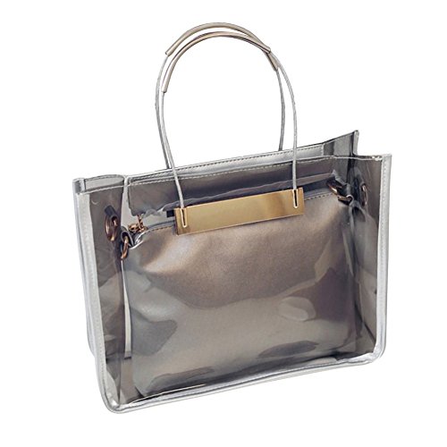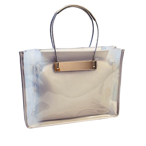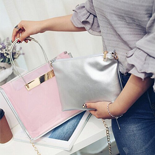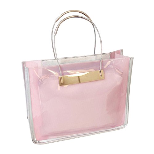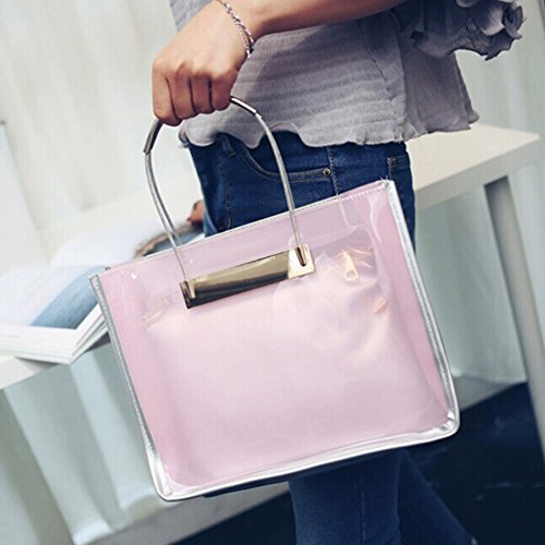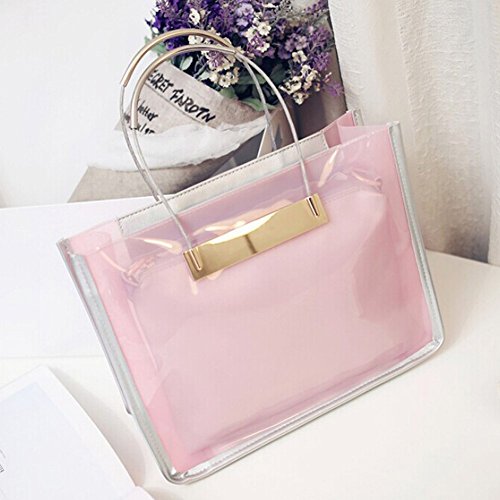Zicac New Fashion 2 in 1 Tote Transparent Top Handle Handbag Chain Shoulder Bag (Pink)
