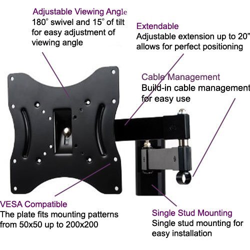 - Title : VideoSecu Articulating Arm (20" Extension) LCD LED TV Wall Mount Full Motion Tilt Swivel Mount Bracket for most 22" 23" 24" 26" 27" 30" 32" 36" 37" Flat Screen with VESA 100 200 Mount Pattern 1XE