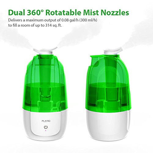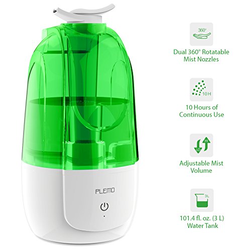 Ultrasonic Cool Mist Humidifier, PLEMO Single Room Humidifier with 102.5oz/3L Water Tank, Two 360 Degree Nozzles, 2 Speed Mist Settings, Waterless Auto Shut-off for Home, Office, Baby Room