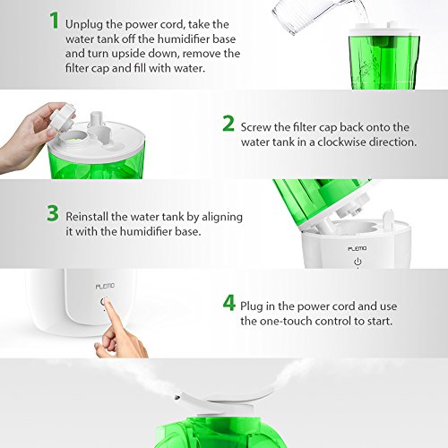 - 【Air Humidifier with Built-in Ceramic Filter】Replaceable ceramic filter of the single room humidifiers can absorb impurities, bad odors of water, and this ultrasonic cool mist humidifier can keep the mist and your room smelling fresh.