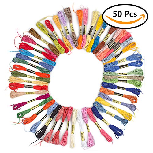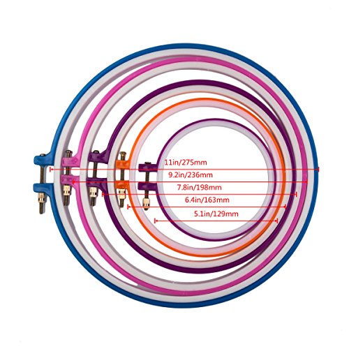- ★ALL-in-One Set: This set includes 50 colors of threads and 5 sizes of embroidery hoops, which can totally satisfy your need of embroidery. 5 sizes of embroidery hoops enable you to teach your friends or children embroidery, or you can create small or large designs!