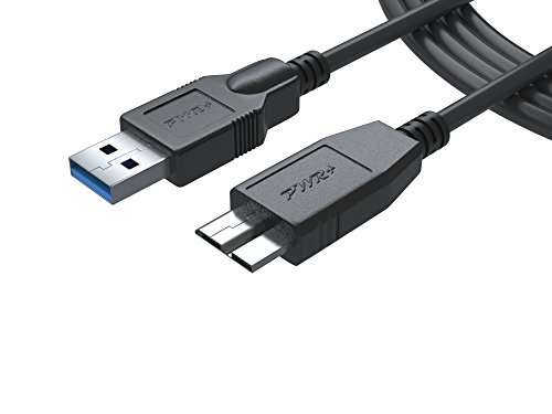 Pwr+® 6 Ft USB 3.0 Micro-B Data Sync Cable for External-HDD WD-My-Passport Ultra Slim Air Essential SE My Book-Studio-Elements-Portable Wireless Pro; Seagate-Wireless Plus Backup; LaCie Hard Drive