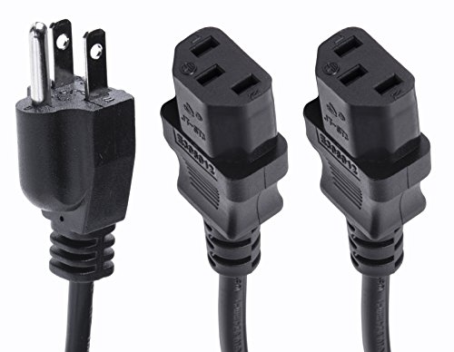[UL LISTED] Pwr+ 4 Ft Power Strip Liberator Extension-Cord Splitter NEMA 5-15P to 2 x C13 18AWG for Acer Asrock Bowflex Epson Frigidaire Foxconn Fuel Haier Hamilton Honeywell Horizon Proform
