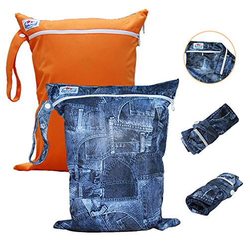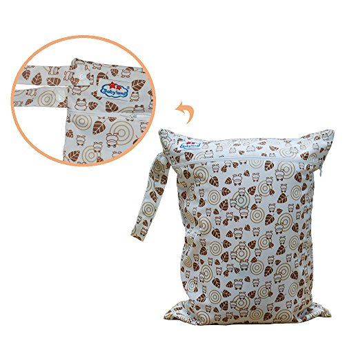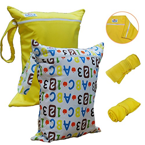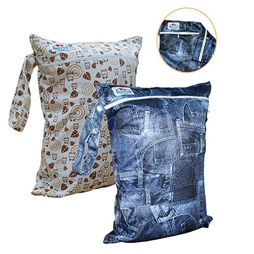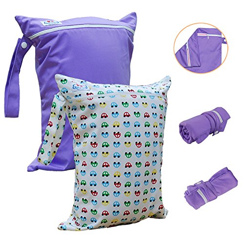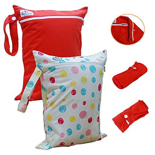 Babyfriend Baby 2pcs Pack Wet and Dry Cloth Diaper Bags,Waterproof,2 Zippered Pockets with Snap Handle