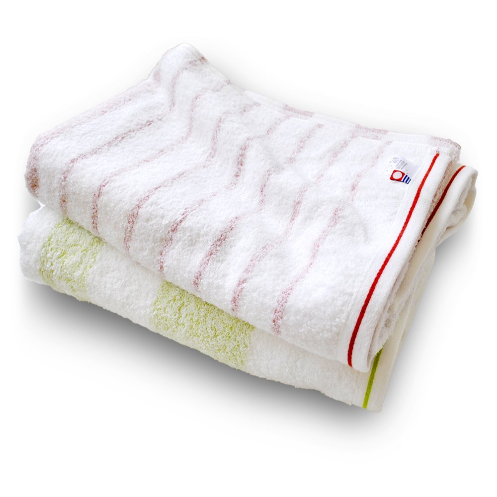 Bloom Imabari Towel natural border bath towel 2 pieces set (Green-Red) natural_bt2_ red-green