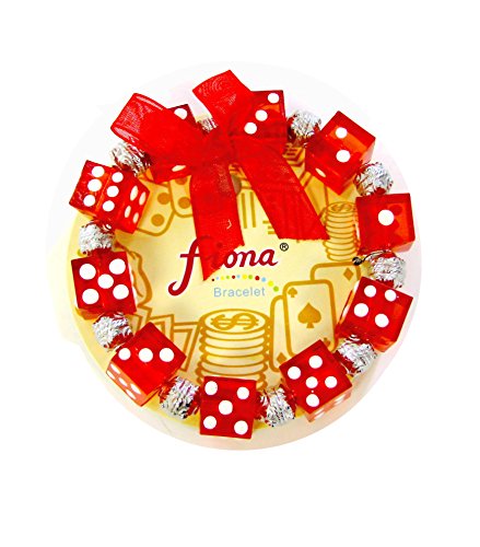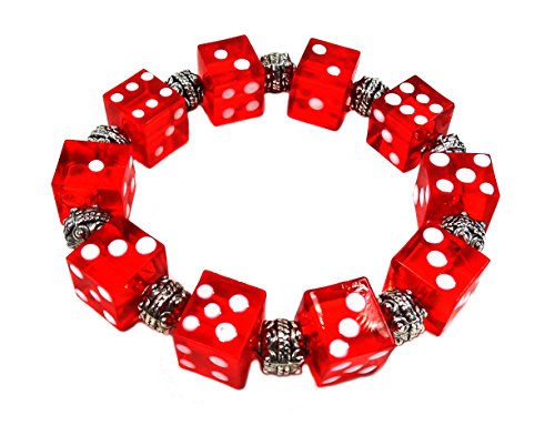 Linpeng IUP-21-5R Hand Painted Dice Acrylic Beads Stretch Bracelet,Red