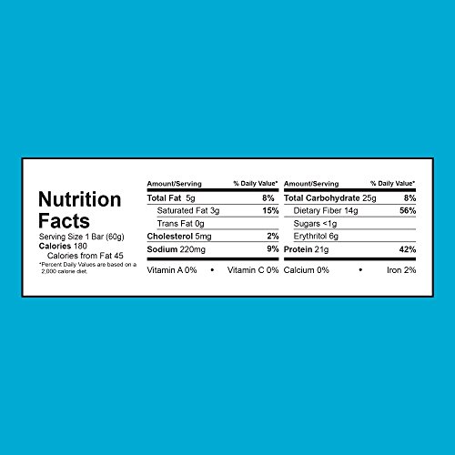21g Protein, 5g Net Carbs, <1g Sugars, 14g Dietary Fiber, 180 Calories, 5g Fat