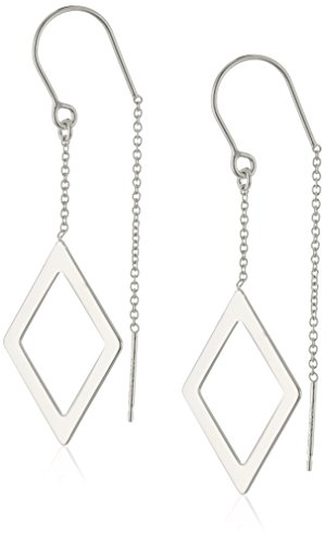 -. Title : Rhodium Plated Sterling Silver Open Diamond Shaped Dangle Drop Earrings