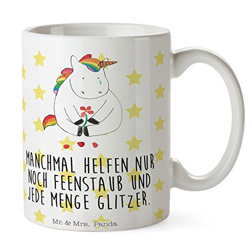 -. Feature : Tasse Einhorn Traurig - Ooooh, ein trauriges Einhorn... Da hilft wohl nur noch jede Menge Glitzer! Das traurige Einhorn ist die beste Methode, um jemanden vom Liebeskummer zu befreien. Manchmal läuft es nicht so wie geplant, dann braucht man Feenstaub und jede Menge Glitzer. / Premium Tasse aus Keramik - Dieses hochwertige Produkt wir in unserer Manufaktur in Norddeutschland mit Liebe gefertigt und verpackt. / per Hand verpackt und veredelt, zum Schenken und Verschenken ist dieses niedliche Präsent ideal als Geburststagsgeschenk / 100% in Deutschland handgefertigt aus Keramik Material / Unsere Produkte sind als Geschenk für den Freund, die Freundin, denn Mann, die Frau, den Geliebten, Ehemann und Ehefrau, für den Jahrestag, den Hochzeitstag, zur Verlobung, zum Einzug, für Kinder und Erwachsene, für frisch Verliebte oder ein altes Ehepaar, für Oma und Opa, für Papa und Mama, für jung und alt geeignet - ein liebevolles Geschenk von Herzen von Mr. & Mrs. Panda ist immer etwas ganz besonderes.