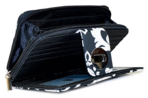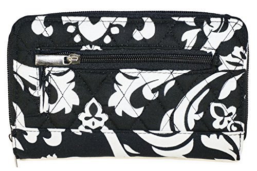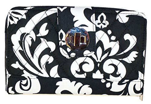 Turn Lock Quilted Double Zip Around Wallet, Damask (Black)