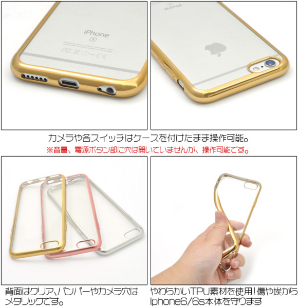 iPhone6/iPhone6s用のメタリックバンパーソフトクリアケース