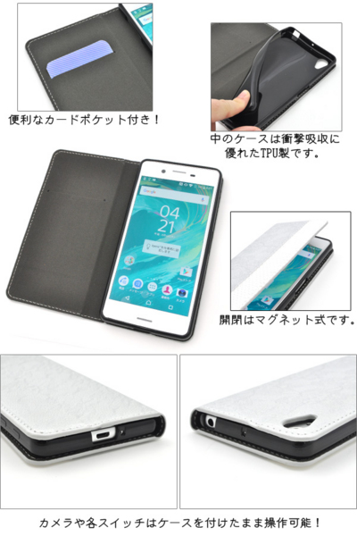 Xperia X Performance(SO-04H/ SOV33/502SO)用のレザー地の上に