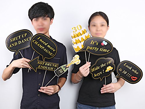 - 30 MEN and WOMEN BIRTHDAY PARTY SUPPLIES DECORATIONS -30th Birthday Parties gold decorations. unique design and fashion style.Unisex pattern. Make many fun ways to use these cute photo booth props! Everyone will loved them and the funny sayings!