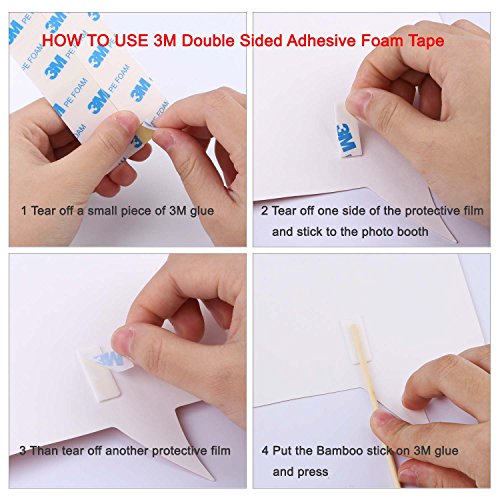 - SUPER QUALITY,EXTRA 3M STICKERS PROVIDED,SIMPLE ASSEMBLY,: Never worry the photo booth fall off the stick,will stay on the wooden sticks! EASY ASSEMBLY IS NEEDED!