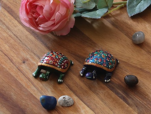- Feature : New Year New Deals - Clearance Sale - Big Discounts and Offers till Stocks Last / Turtles are a popular symbol in mythology because of their longevity and symbolizing tranquility. Bring to your home this good luck charm, which also symbolizes positivity and fortune / Representing finest white metal-work from Rajasthan, India, the craftsmen have shown exceptional skill in engraving and ornamenting this animal figurine / Rich Meenakari work indigenous to the region has been etched on the turtle's shell. Send a dash of good luck to your loved ones with this beautiful, long-lasting, thoughtful figurine / This is a handmade, assorted product, so it is not possible to choose which design you will receive. Please allow us to choose for you and we will ensure you are not disappointed. Please expect variations in colors and design if you buy multiple. Dimensions: 3L x 1.6W x 1H Inch