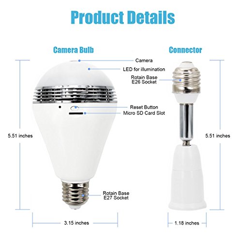⭐TecBillion Security Camera Bulb Wifi System, White ⭐Feature: 1. High resolution 360-degree fisheye lens with wide view angle, keep your place's safety everywhere.