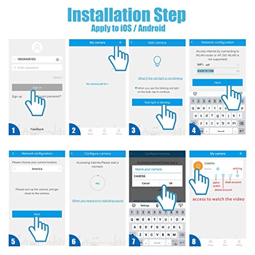 6. Easy setup: Quick Wi-Fi setup via iOS or Android Smartphone app, you can view the video whenever you like.