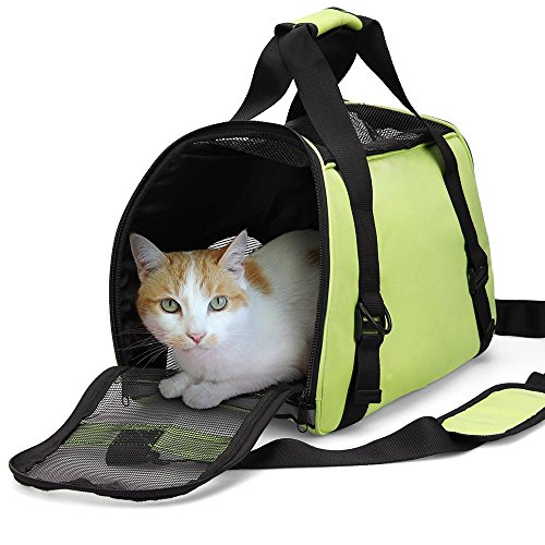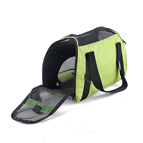 -. Feature : AIRLINE APPROVED PET CARRIER - 17"L x 8"W x 12"H. Compliant with most airlines (Please check with your specific airline carry-on size restriction). Airline approved Pet Carrier is designed with plenty of mesh panels that allow for maximum accessibility and ventilation for your pet. It works great for kittens, puppies and teacup breeds up to 8.5 lbs. / PREMIUM MATERIAL - This pet carrier is made of durable, lightweight, waterproof nylon and mesh materials. It comes with a removable pad for comfort and easy cleaning. Water resistant base with special nano-coating application to keep area nice and clean. / SAFTY AND BREATHABLE - The shoulder strap is padded to make carrying as easy as possible. Besides the hand carrying straps, this pet carrier also includes straps on both sides to secure a car seatbelt in place. Padded shoulder strap Among pet owners top travel fears are the security and comfort of their pet. Special mesh cover design with 1/2 shade area and 1/2 dynamic air-flow netting to provide better shade, cooler space, dynamic air ventilation, and security. / STURDY AND LIGHTWEIGHT - Hassle free installation with re-enforced steel wire frame design to make the setup of tool-free and be stored in seconds. Heavy-duty and durable construction allows to fit well the most rambunctious pets. Designed with Breathable Mesh for proper ventilation, removable fleece travel bed padded shoulder strap ,ID Tag ,storage compartments for treats or meds. / PERFECT DESING - An Exterior Storage Pocket on the side gives you a place to keep essentials for your beloved pet, such as a leash or snacks. 4 double-zippered doors/entries with handy to keep door sealed or opened for maximum convenience and accessbility. 8-sided steel wire mesh panel design for maximum comfort, visibility, and air ventilation.