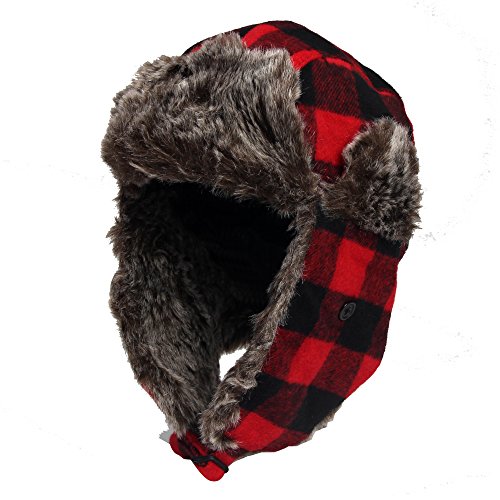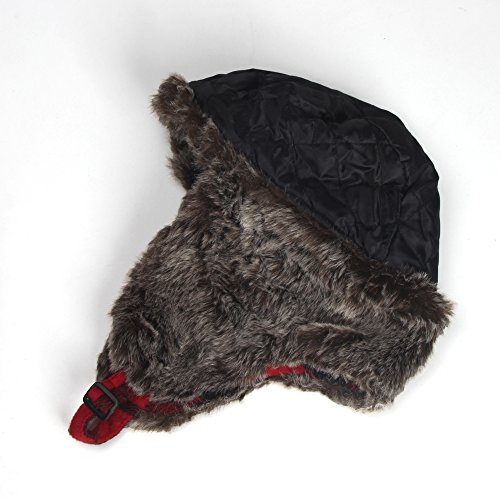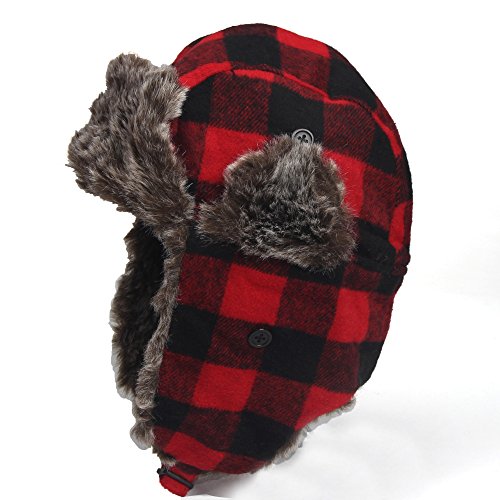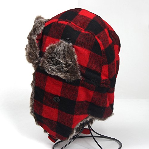 (DONGKING)/Accessories/Hats/DIRECT FROM USA/DONGKING Wool Blend Trapper Bomber Hat Earflap Cap Red Plaid Faux Fur Outdoor Winter Hat For Women
