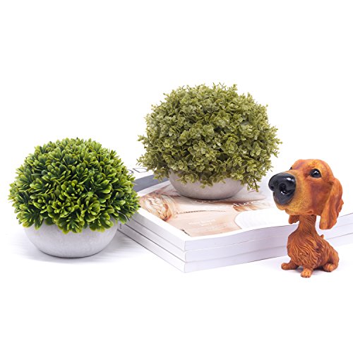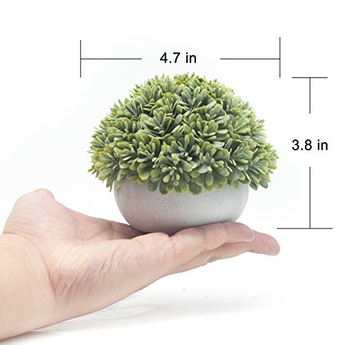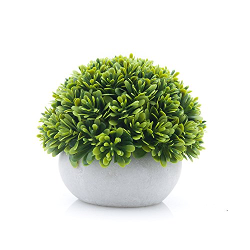 Velener Mini Artificial Green Grass Ball in White Cement Pot for Home Decor(Set of 2)
