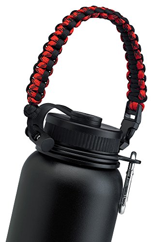 Hydro Flask Paracord Handle Holder 20oz 32oz 40oz & 64oz For Hydro Flask Nalgene CamelBak for #1 Wide Mouth Water Bottle Carrier Strap Cord with Safety Ring +Metal Carabiner! A PRIME Best Gift Ideas!