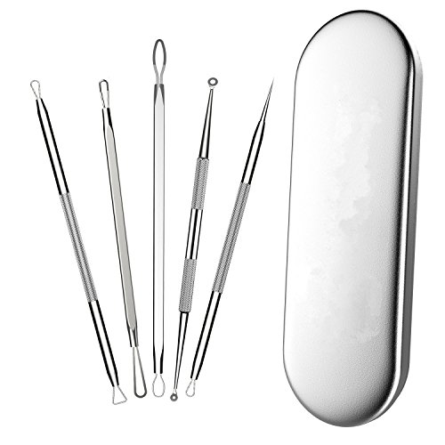Blackhead Remover Kit, Extractor Removal Set 5 Pcs Professional Stainless Steel Pimple Popper Tool Treatment for Whitehead Blemish Acne Comedone...