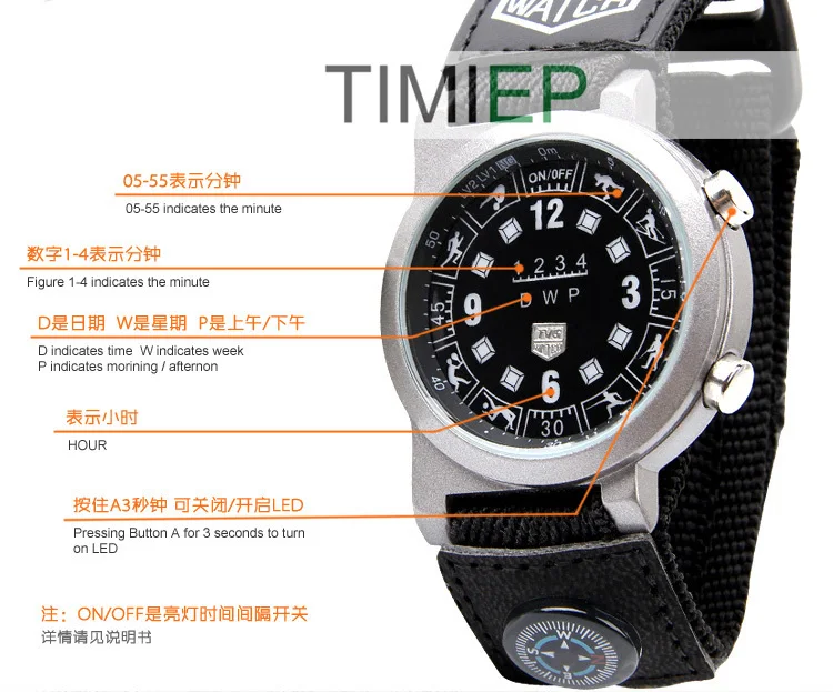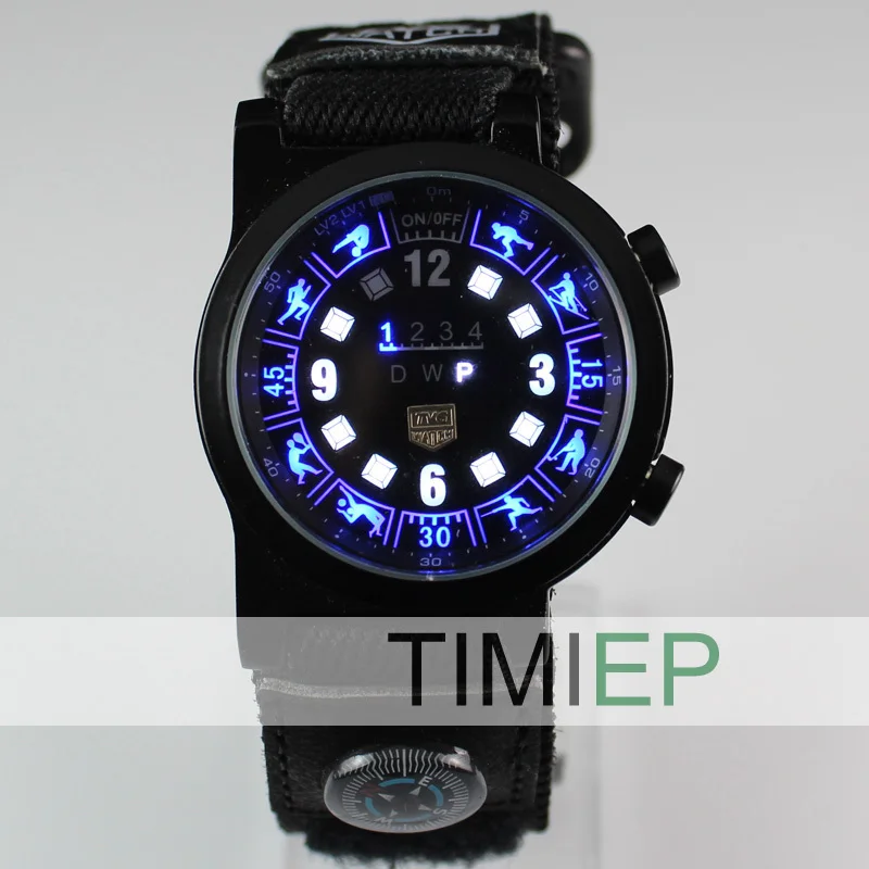 3. founction 시간, 날짜 및 주. 매우 쉽게 읽을 시간 계산 블루 & 화이트 led 링 다이얼 직접.
