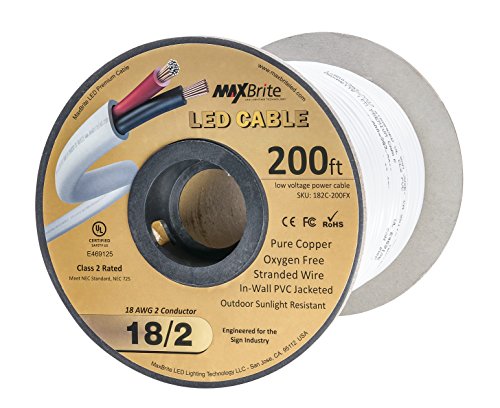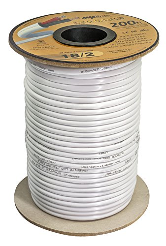 18AWG Low Voltage LED Cable, 2 Conductor, Outdoor Rated, Jacketed In-Wall Speaker Wire UL/cUL Class 2, Sunlight Resistant (200ft Reel)