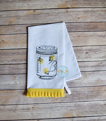 Product Description Look, over there! Did you see it? Remember the warm summer nights spent outside trying to catch fireflies? Carefully placing each one in a jar to stare at the natural beauty only to release them back into nature. While those nights may be limited, memories will last forever. Enjoy this stunning embroidered firefly tea towel and bring back memories of warm summer nights. Deluxe high quality material Measuring approx 20X24 Corner loop, perfect for hanging Embroidered firefly design Hand sewn yellow edging Handcrafted at the Blue Hive studio in beautiful Texas. Orders are shipped USPS. Domestic orders will have a tracking number provided for your reference upon shipment. Please take a moment to review all shop policies before making your purchase. Customer satisfaction is of the utmost importance so please do not hesitate to contact me with questions or concerns. 0