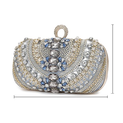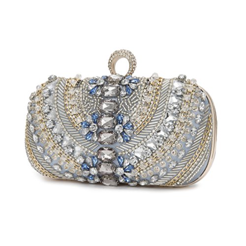 Product Description The Blue evening bag is made of crystal pearl beads . This Blue evening bag is a clutch ,has a hasp .