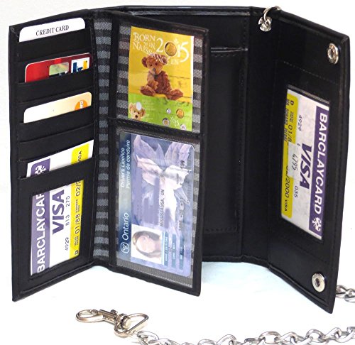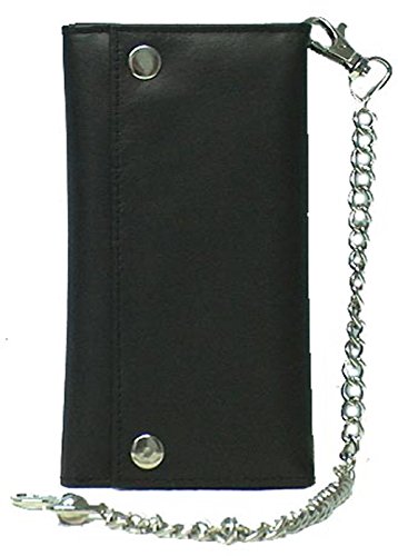 -. Title : Men's Tri-fold Genuine Cowhide Leather Biker / Truckers' Wallet Black #4695 US