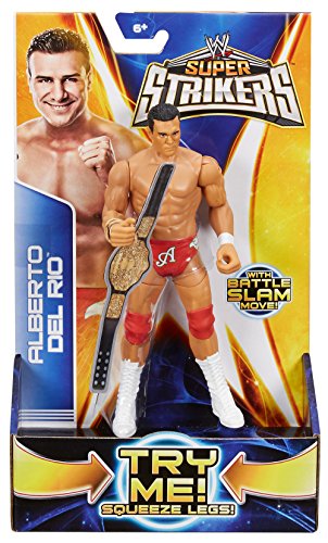 -. Binding : Toy -. Brand : Mattel -. EAN : 0885397038573 -. Feature : Super Strikers recreate real Superstar signature moves / Squeeze their legs to launch attacks including punches and slams / Created in 6-inch, realistic Superstar Scale / Each figure has authentic attire / Increase the mayhem with the Super Strikers Turnbuckle Takedown Ring (sold separately) -. IsAdultProduct : 0 -. ItemPartNumber : BJM98 -. Label : WWE -. Manufacturer : WWE -. Model : BJM98 -. MPN : BJM98 -. PackageQuantity : 1 -. PartNumber : BJM98 -. ProductGroup : Toy -. ProductTypeName : TOYS_AND_GAMES -. Publisher : WWE -. Studio : WWE -. Title : WWE Super Strikers 6" Alberto Del Rio Figure -. UPC : 792491606112 -. Warranty : No Warranty