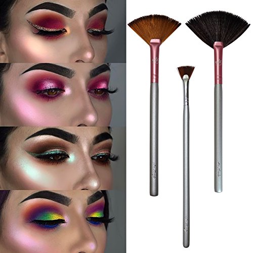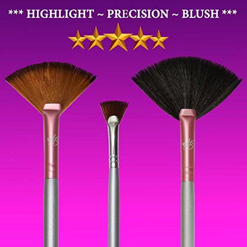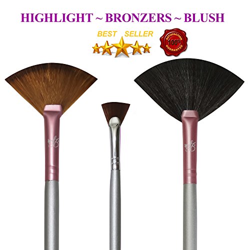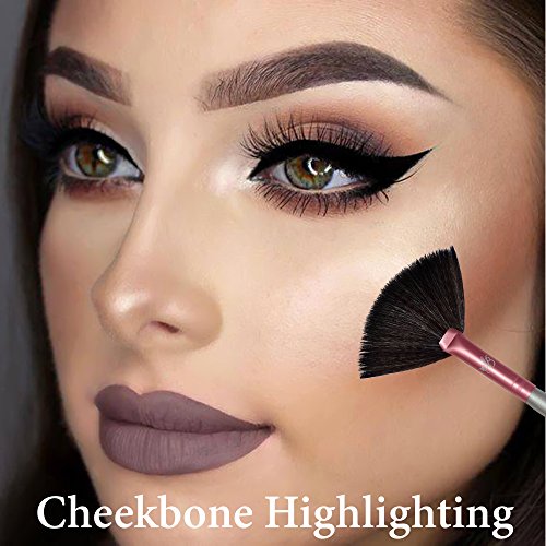 Makeup Highlighting Fan Brush Cheeks - Bronzers an Highlighter Kit Nose & Brow Premium Fan Brushes For Makeup Plush Fan Brushes Small Firm Fan...