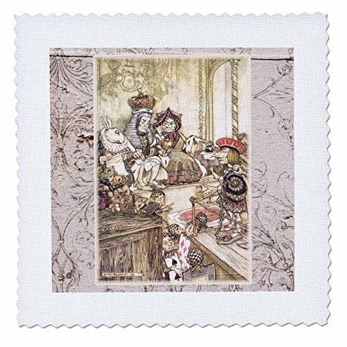 3dRose qs_110234_1 Queen and King of Hearts Alice in Wonderland Vintage-Quilt Square, 10 by 10-Inch