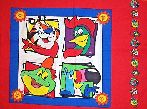 Toucan Sam (Fruit Loops), Tony the Tiger (Frosted Flakes) and Dig'em Frog from Sugar Smacks Pillow Panel - (Great for Quilting, Sewing, Craft Projects, Throw Pillows & More) 17" X 44"