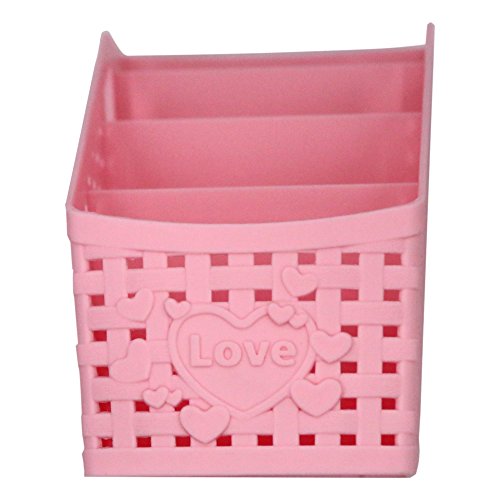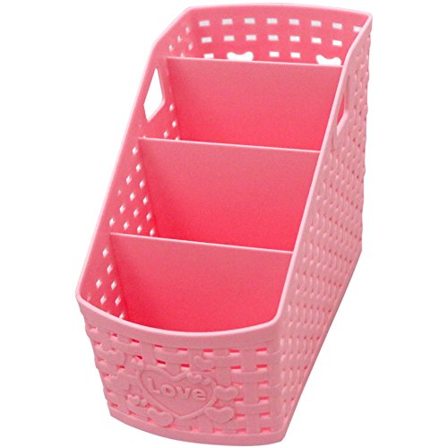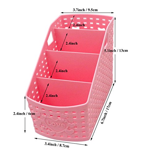 Small Pink Plastic Desktop Storage Organizer Caddy Remote Control/Pen Pencil/Makeup Holder Box for Kitchen Office Desk Home Bathroom(4 Compartments)