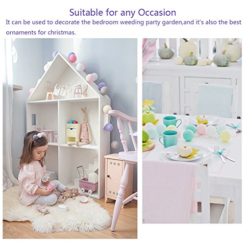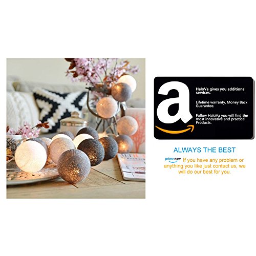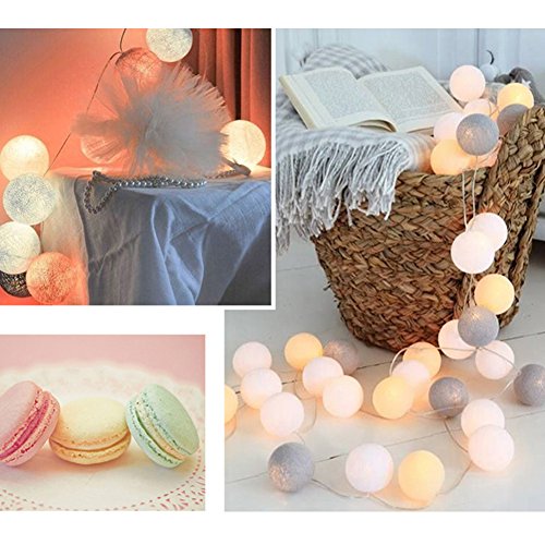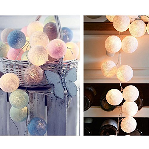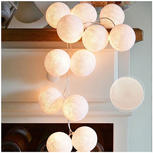 HaloVa String Light, Fairy Starry String Balls Light Cotton Thailand Ball Lamp for Weeding Festival Room Christmas 2018 New Year Ceremony Decoration, White, 9.9ft 20 LEDs Battery Powered