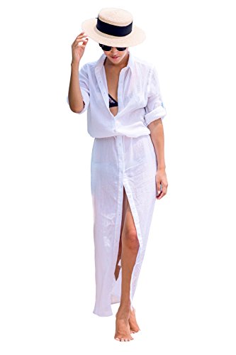 Feature : Fabric:Chiffon ruffle /chiffon crepe.Note:SHEER material,please refer to our LAST actual item picture before ordering ,thanks! / Style:sheer and soft material ,collar and button design ,tunic style make you more charming. / Perfect for beach ,vocation or casual wear etc / One size fits US XS-M,Shoulder length:15.3 '';Bust:40'';Sleeve:21.5'';Sleeve cuff:5'', length:52'' / Hand washable and machine washable