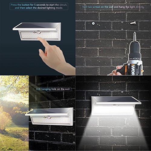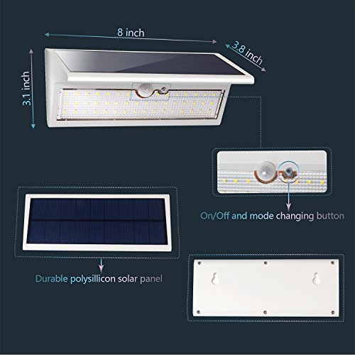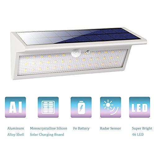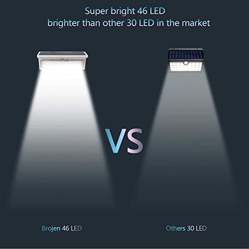 - ✔ Ultra-Bright Solar Lights: 46pcs powerful SMD2835 LEDs with 800 lumens (equal to 60W filament lamp) which is far brighter than other solar lights in the market. It's a perfect choice to be used in outside wall, garden, fence, patio, pathway, yard, driveway etc.